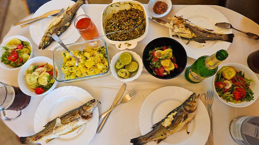 We were lucky to be invited to my local friends’ home, where they prepared grilled fish straight from the BBQ with young potatoes and the sweetest tomatoes I’ve ever tasted — all drizzled with that amazing Istrian olive oil. It was one of the most memorable meals of our trip.