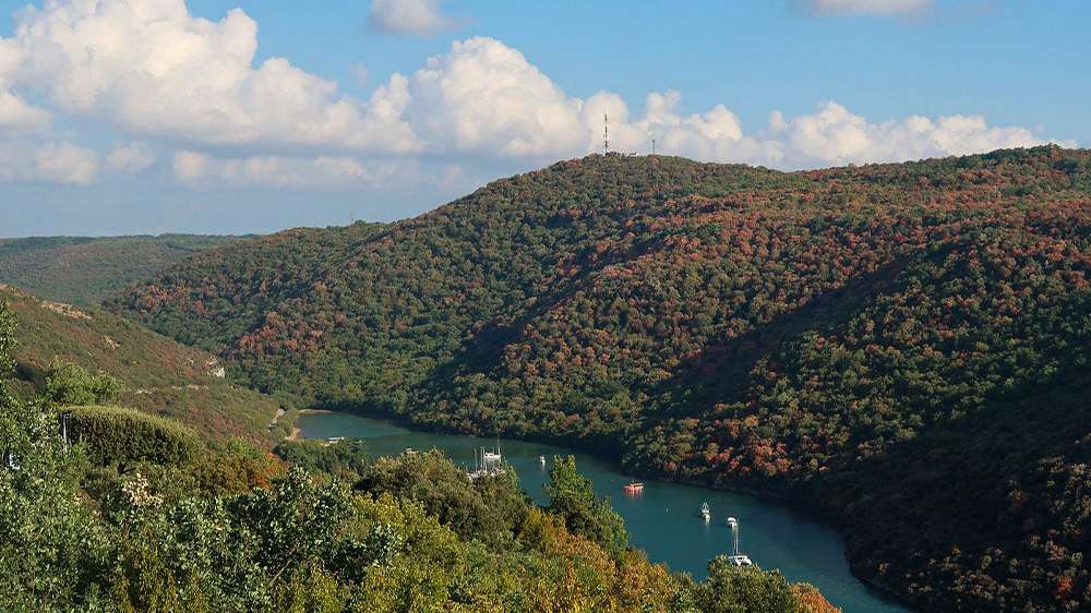 Just 20 minutes north of Rovinj, Lim Fjord (also called Lim Bay) is a dramatic, forest-lined estuary that looks more like a Norwegian fjord than the Croatian coast. It’s one of the most scenic day trips from Rovinj, and also one of the best things to do near Rovinj if you’re after nature and relaxation.