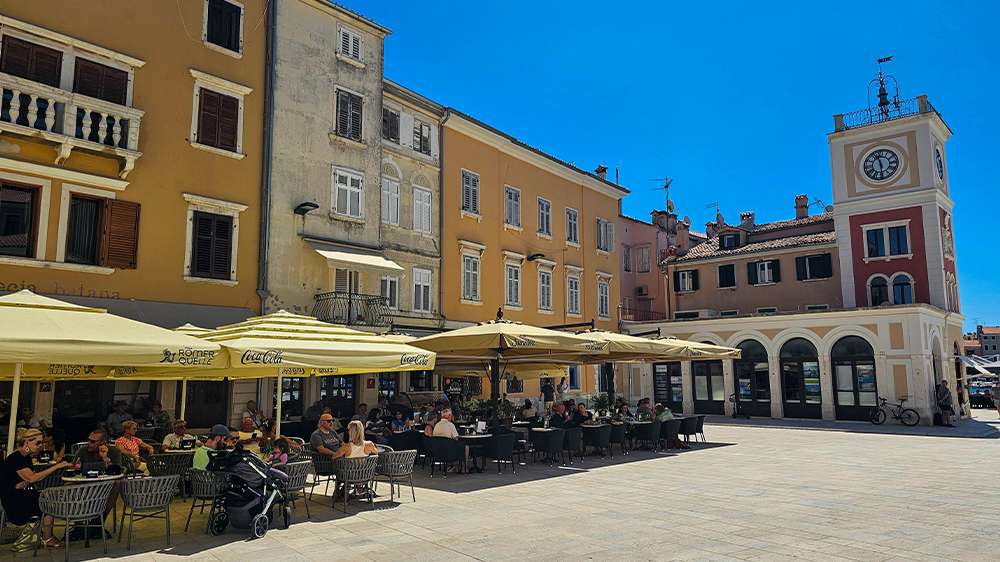 Finish your Rovinj wanderings with a visit to the Main Square (Trg Maršala Tita). It’s the heart of local life — colourful, bustling, and lined with cafés, restaurants, and souvenir shops.