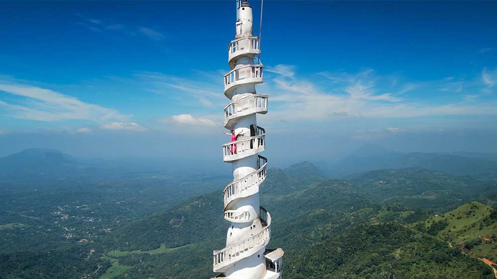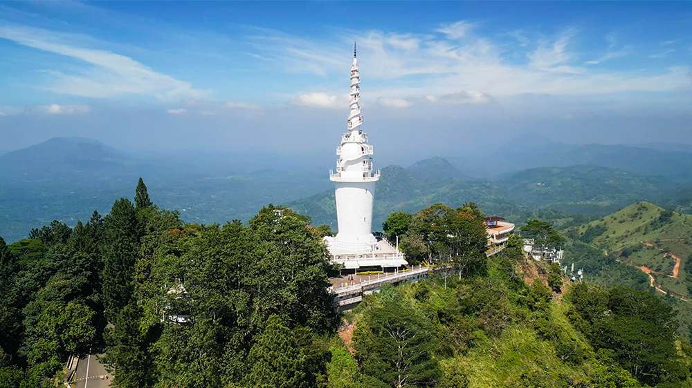 Ambuluwawa Tower was the highlight of our day trip from Kandy. The drive up is steep but smooth, and once you reach the hilltop, the views are incredible. The white spiral tower rises above the entire valley, and climbing it feels surreal with narrow steps, strong wind, and endless views over the mountains.
