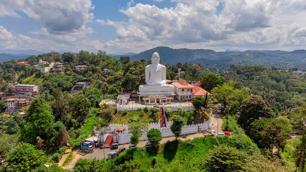 If you’re looking for peaceful viewpoints and cultural experiences among the best things to do in Kandy, the Big Buddha is a must-see. This massive white statue stands high above the city, and the short, steep walk to the top is worth it for the panoramic views alone.